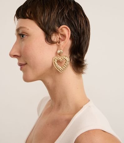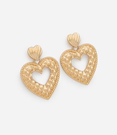 Ref: Brinco médio em metal com fechamento por tarraxa e pingente coração texturizado.