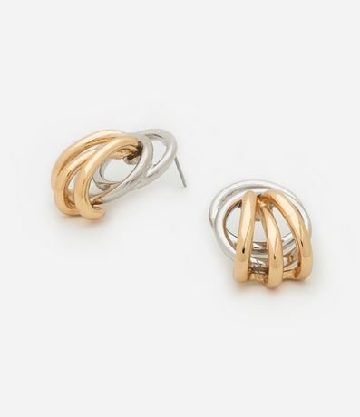 Ref: Brinco pequeno bicolor com esferas em nó, confeccionado em metal reciclado.