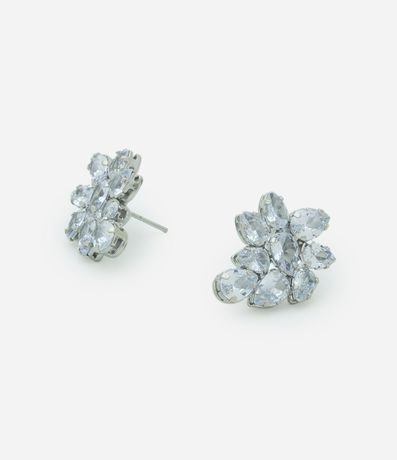 Ref: Brinco pequeno com forma de folhas e pétalas em zircônia.