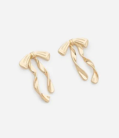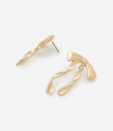 Ref: Brinco pequeno de metal com forma de lacinho. Este produto possui metal reciclado em sua composição, sendo ambientalmente mais responsável.