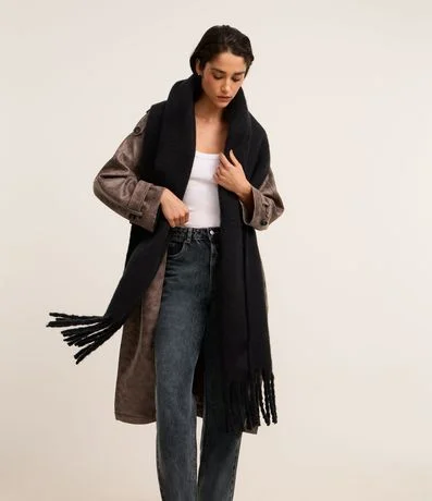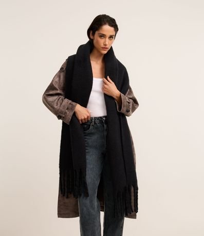 Ref: Cachecol confeccionado em fleece de poliéster com franjas robustas. Acessório com pelinhos, franjas robustas além de lettering "I'm Cold" na etiqueta.