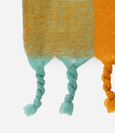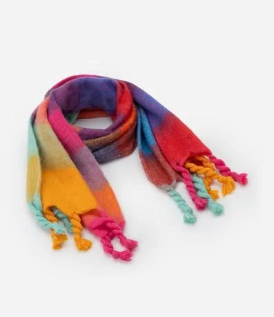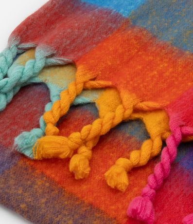 Ref: Cachecol feminino confeccionado em fleece, com franjas trançadas e estampa xadrez.