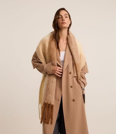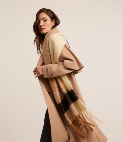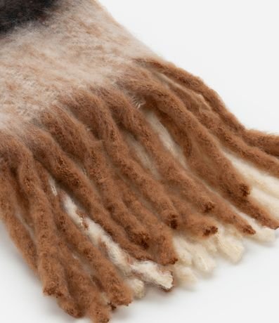 Ref: Cachecol quentinho confeccionado em fleece estampado de bloco de cores. As pontas têm acabamento de franjas.