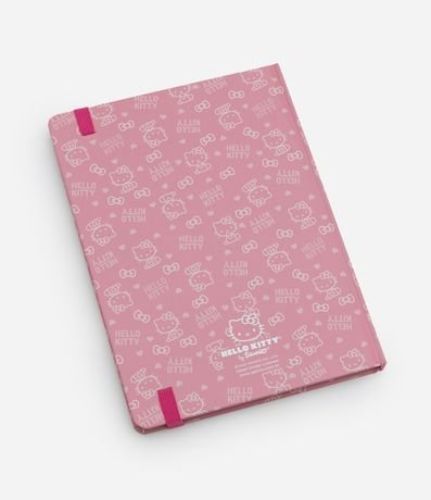 Caderno feminino, confeccionado em papel, com elástico para fechamento na borda e estampa Hello Kitty.