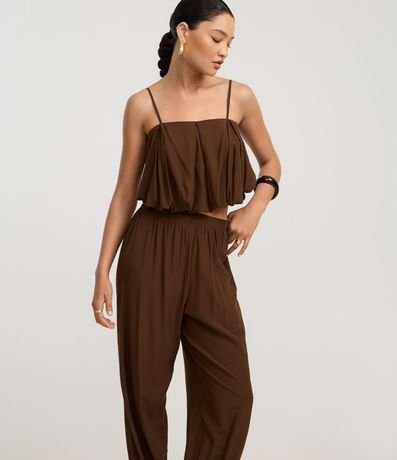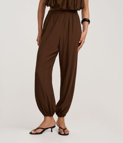 Ref: Calça aladim ballon, confeccionada em viscose, com cintura média e elástico atrás do cós. Peça com elástico também nas barras. Este produto possui viscose certificada em sua composição, sendo ambientalmente mais responsável.