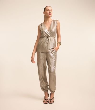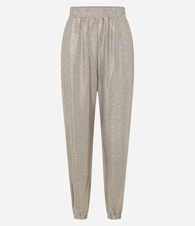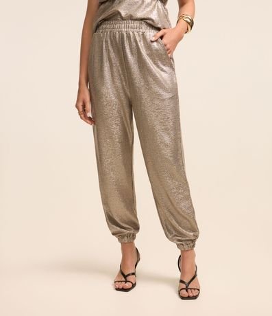Ref: Calça aladim com elástico na cintura e além de bolsos. Possui fio metalizados.