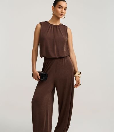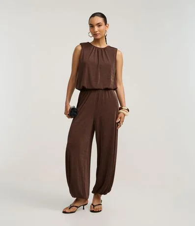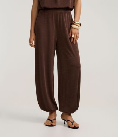 Ref: Calça aladim com elástico no cós largo nos tornozelos. Tecido levemente brilhante. Este produto possui material mais sustentável em sua composição, sendo ambientalmente mais responsável.