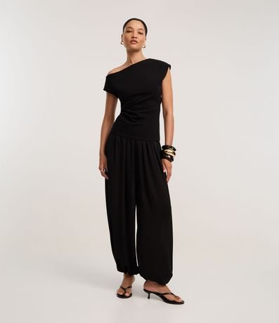 Ref: Calça aladim com cós elástico, transparência, cintura média com pregas e confeccionada em crepe produzido através de boas práticas ambientais.
