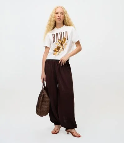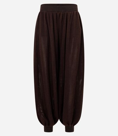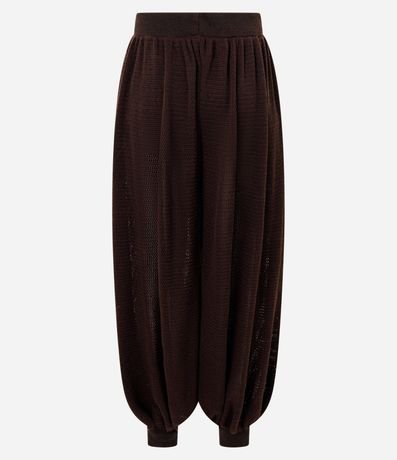 Ref: Calça em tricô com modelagem aladim e caimento amplo. Possui cós elástico confortável, ponto vazado que traz leve transparência e punhos ajustados, garantindo movimento e estilo. Ideal para compor produções modernas e descontraídas com toque artesanal.