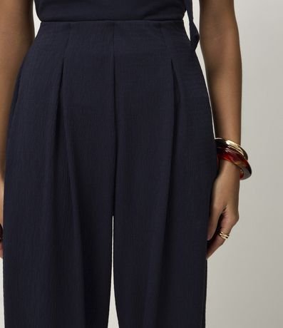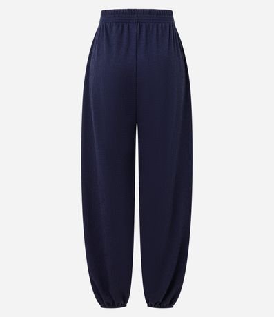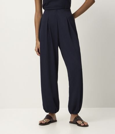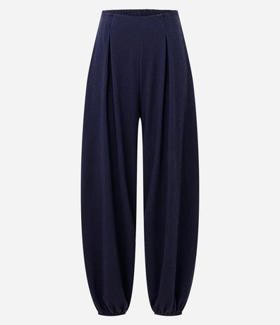 Ref: Calça comprida feminina texturizada. Possui modelagem aladim, com volume amplo nas pernas e afunilamento na barra. Cós com elástico embutido e pregas frontais que acrescentam amplitude.