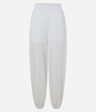 Ref: Calça aladim, confeccionada em piquet, com elástico no cós. Peça texturizada. Este produto possui material mais sustentável em sua composição, sendo ambientalmente mais responsável.