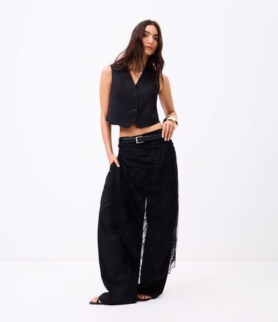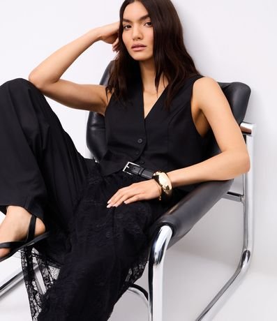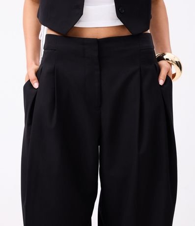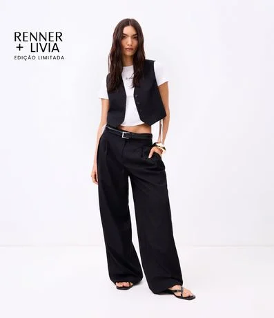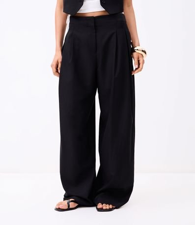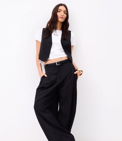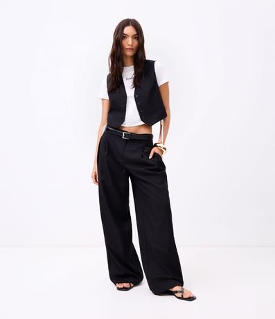Ref: Calça alfaiatada, confeccionada em tecido plano, com faixas reguladoras com botões atrás do cós, pregas frontais e bolsos falsos atrás. Este produto possui viscose certificada em sua composição, sendo ambientalmente mais responsável.