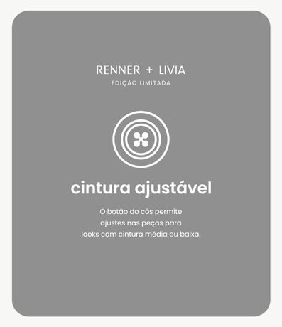 Produto contém percentual de viscose responsável, uma fibra artificial produzida a partir da polpa da madeira que, através de processos químicos, é transformada em fibra têxtil. Utilizamos viscose certificada, proveniente de regiões reflorestadas que seguem controle rigoroso na utilização dos químicos do processo, promovendo responsabilidade ambiental e sustentabilidade. Saiba mais em: https://www.lojasrennersa.com.br/sustentabilidade/meio-ambiente/produtos-mais-sustentaveis/