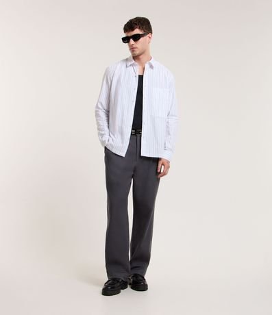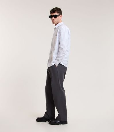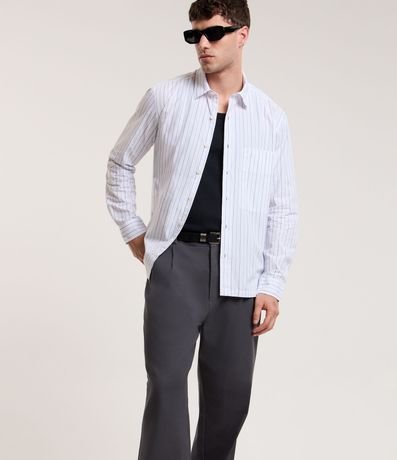 Ref: Calça confeccionada em sarja com corte alfaiatado, passantes na cintura, fechamento tradicional por botão e zíper, bolsos e pregas.