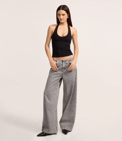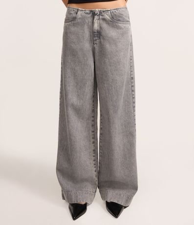 Ref: Calça ampla de cintura baixa, confeccionada em jeans, sem cós, fechamento tradicional e bolsos. Este produto possui algodão certificado BCI em sua composição, além de ter sido produzido através de processos mais sustentáveis, sendo ambientalmente mais responsável.