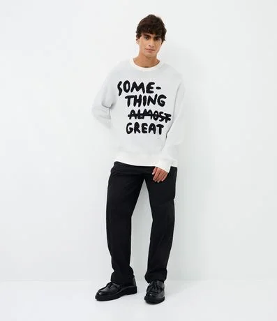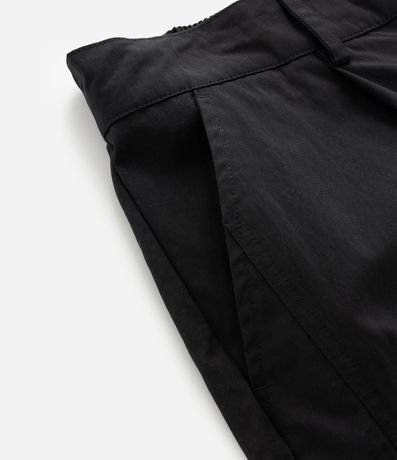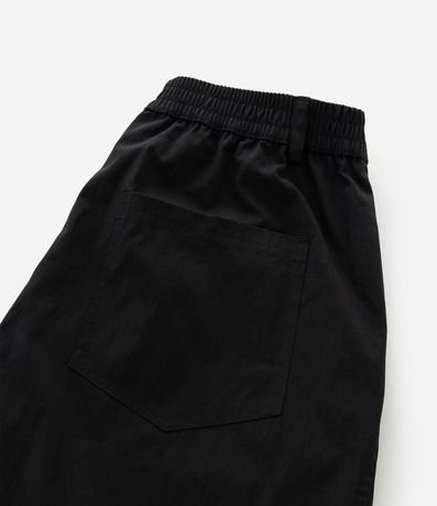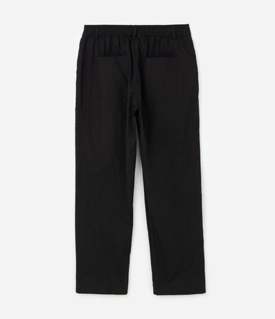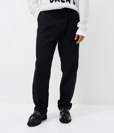 Calça masculina baggy, modelo social, confeccionada em alfaiataria com algodão e poliamida, cós com passantes e elástico atrás, bolsos.