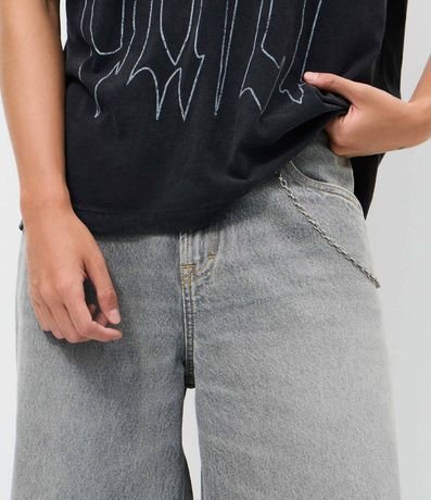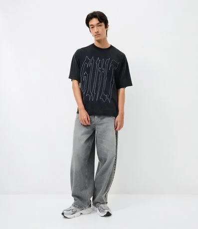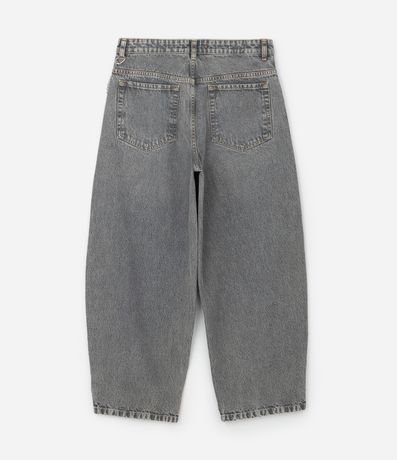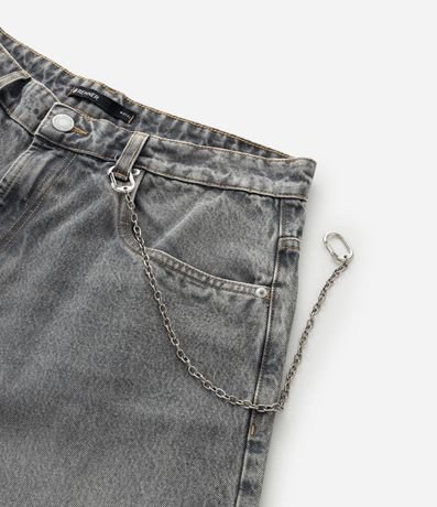 Ref: Calça masculina em jeans estilo baggy balloon, cós fixo com passante, fechamento tradicional, bolso e corrente.
