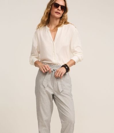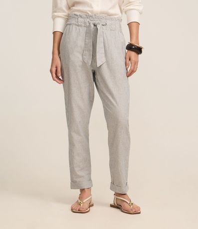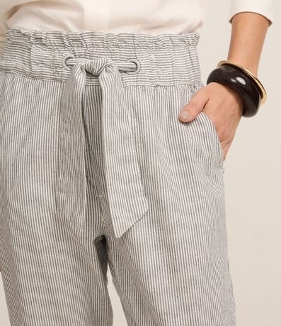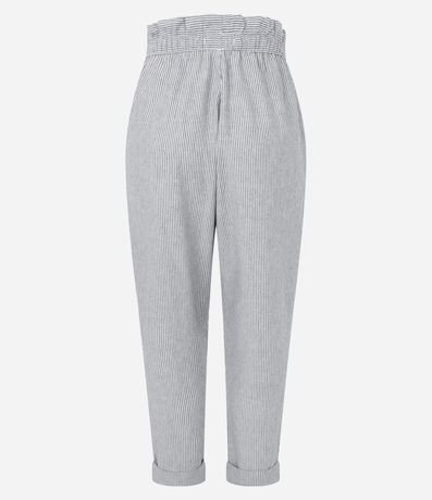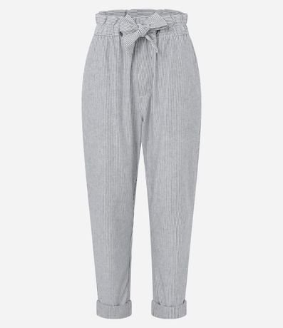 Calça Baggy Cintura Alta em Sarja Listrada com Amarração no Cós