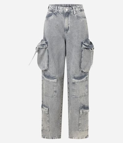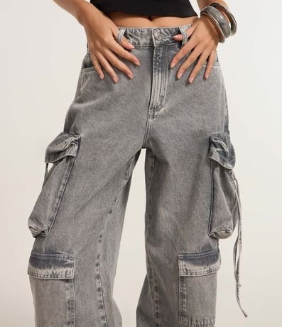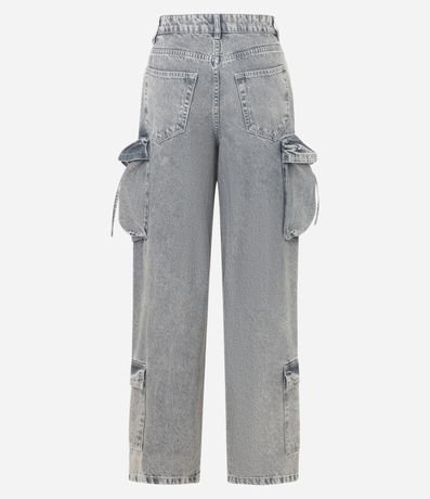 Ref: Calça baggy, confeccionada em jeans com algodão bci mais sustentável, bolsos fole e fitilhos.