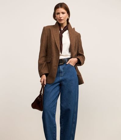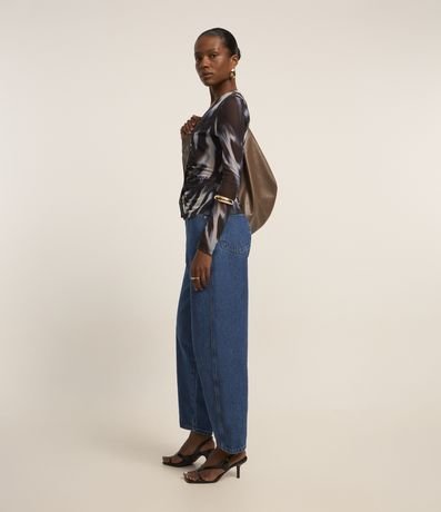 Ref: Calça baggy confeccionada em jeans, com cintura alta e detalhe transpassado na lateral.