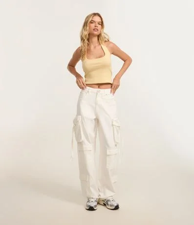 Ref: Calça baggy, confeccionada em sarja, com passantes no cós, fechamento tradicional, bolsos frontais, bolsos traseiros e 03 sequência de pares bolsos cargos laterais. Este produto possui algodão certificado BCI em sua composição, sendo ambientalmente mais responsável.