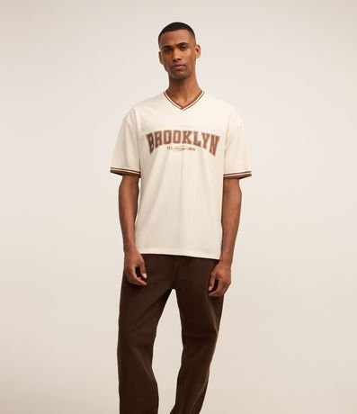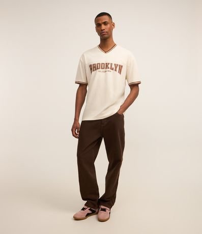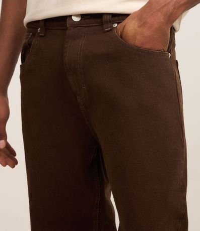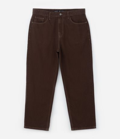 Calça masculina confeccionada em sarja mais sustentável, cós fixo com passantes, botão contrastantes e fechamento por zíper oculto, bolsos. Peça no modelo baggy.