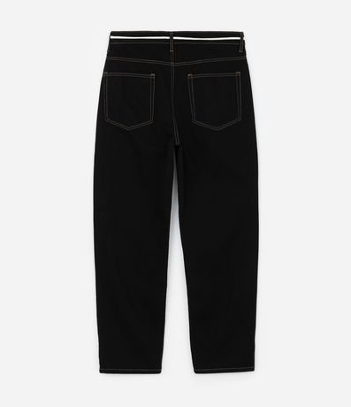 Calça Baggy em Sarja com Costura Contrastante e Cadarço na Cintura