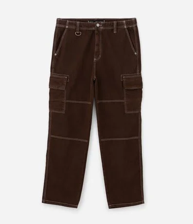 Ref: Calça masculina, modelo baggy, confeccionado em sarja mais sustentavel, cós com passantes, bolso cargo, fechamento tradicional, pespontos contrastantes.