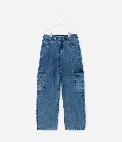Ref: Calça infantil confeccionada em jeans mais sustentável, de modelo baggy, soltinha, com elástico no cós e detalhe de bolsos laterais com lapela, super estilosa!