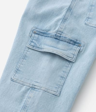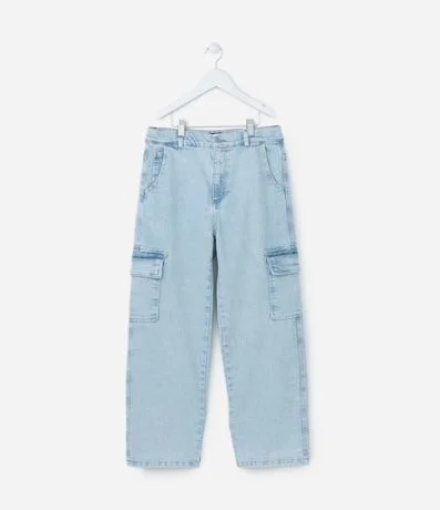 Calça Baggy Infantil Jeans com Bolso Cargo - Tam 7 a 14 Anos