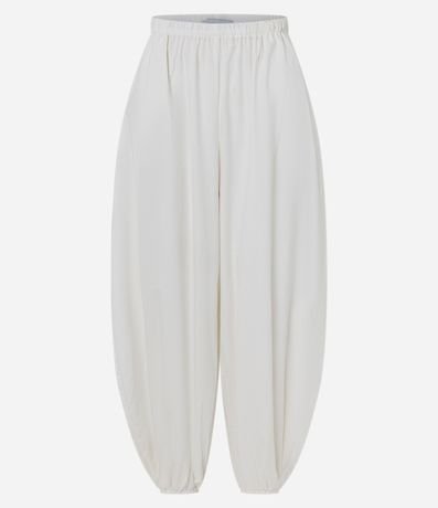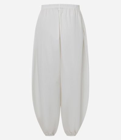 Ref: Calça balloon, confeccionada em tricoline, com elásticos no cós e nos tornozelo. Este produto possui material mais sustentável em sua composição, sendo ambientalmente mais responsável.