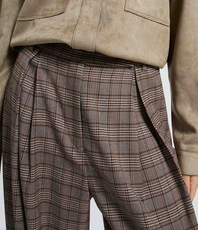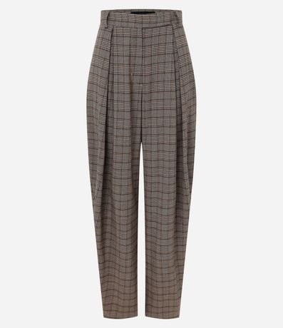 Calça Barrel em Alfaiataria com Estampa Xadrez