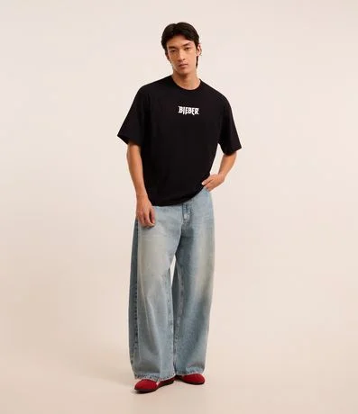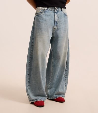 Calça masculina confeccionada em jeans mais sustentável com boas práticas ambientais no modelo barrel, a peça possui cós com passante, fechamento tradicional e bolsos.