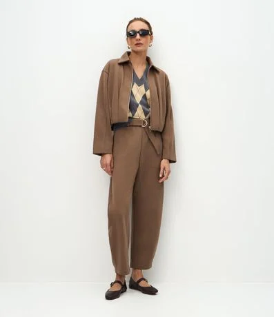 Calça Barrel em Moletom com Felpa e Faixa na Cintura