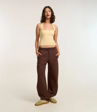 Ref: Calça de moletom, modelo barrel com cós elástico, cordão para ajuste na cintura, forro quentinho em fleece e sem estampa.