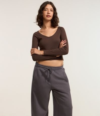 Ref: Calça de moletom, modelo barrel com cós elástico, cordão para ajuste na cintura, forro quentinho em fleece e sem estampa.
