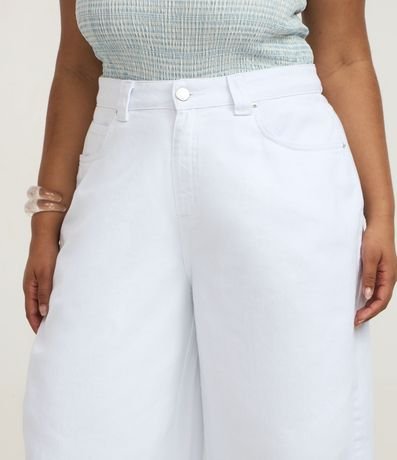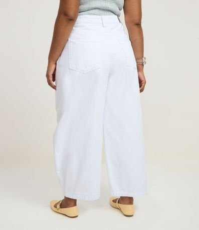 Ref: Calça de sarja modelo barrel com ajuste elástico no interior do cós e pences.