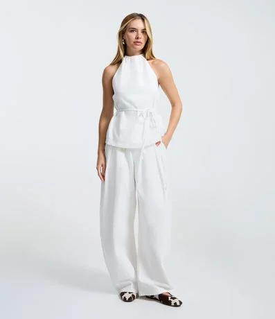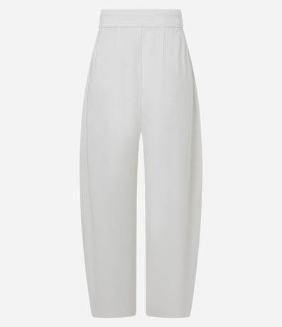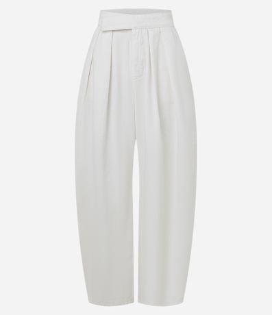 Calça Barrel em Sarja com Pregas e Cintura Alta