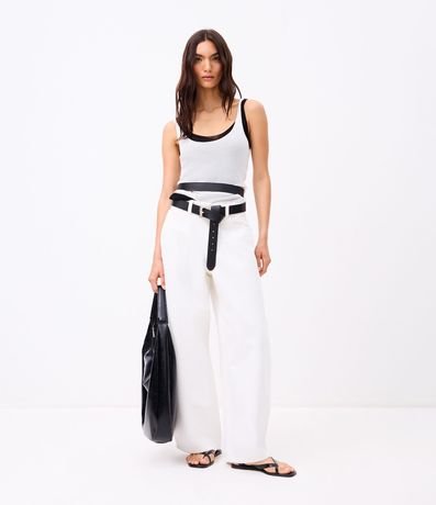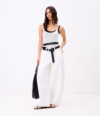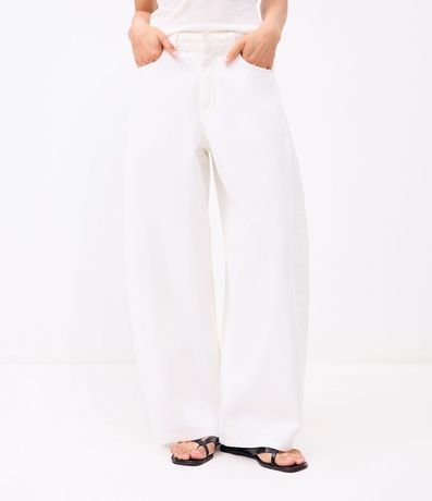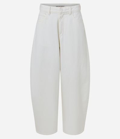 Ref: Calça barrel alfaiatada, maxi oversized, de cintura baixa, confeccionada em sarja, com passantes no cós, fechamento tradicional,