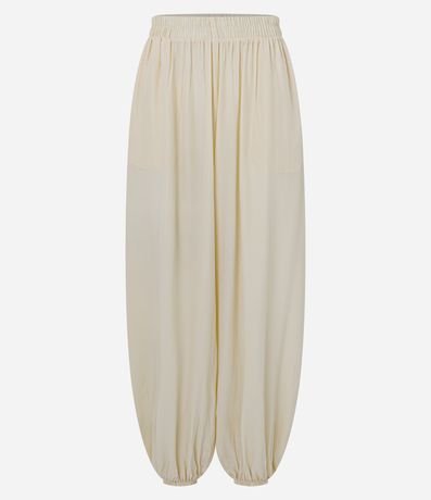 Ref: Calça balloon, confeccionada em viscose, com elástico no cós e nas barras. Roupa incorporada na tendência Boho. Este produto possui viscose certificada em sua composição, além de ter sido produzido através de processos mais sustentáveis, sendo ambientalmente mais responsável.