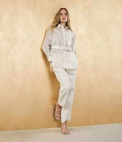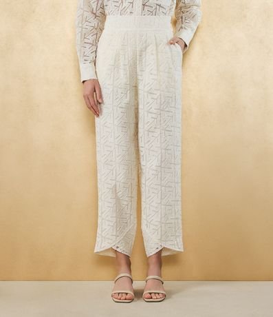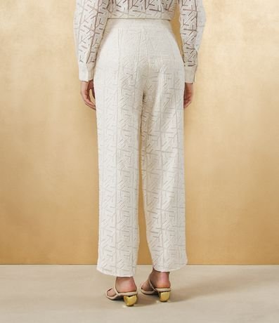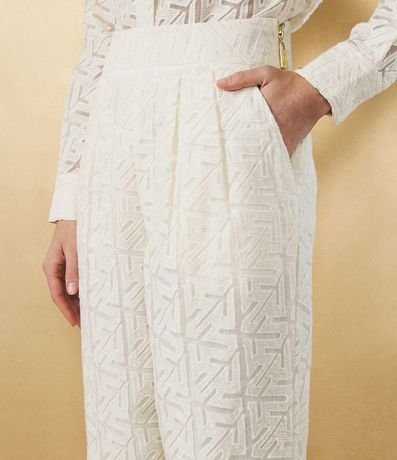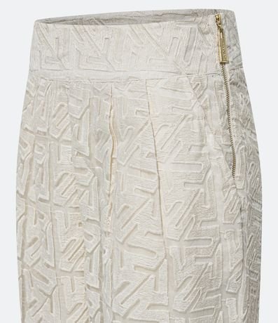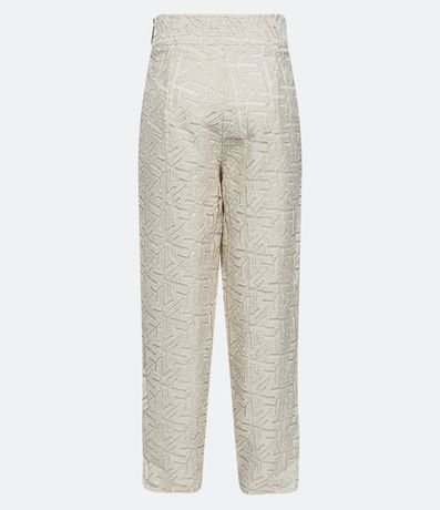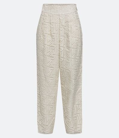 Calça cenoura em organza com abertura lateral por zíper e tecido todo texturizado.