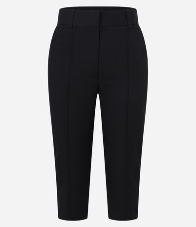 Ref: Calça capri em alfaiataria, cintura média com passantes no cós e friso frontal.