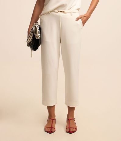 Calça Capri em Crepe com Cinto Fino de FIvela Defirenciada