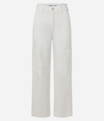 Calça Cargo Cintura Alta em Sarja com Bolso Lateral