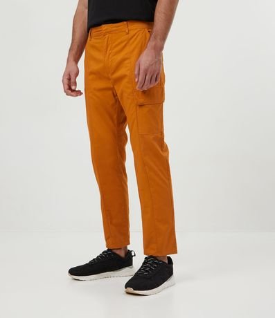Calça masculina modelo cargo com bolso lateral. Os bolsos variados, característicos do modelo, garantem um visual utilitário que está em alta. Clássica e cheia de estilo, é uma opção confortável para o dia a dia.