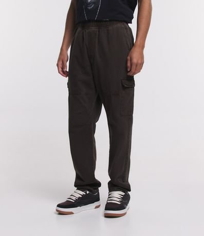 Calça Cargo em Sarja com Cós Elástico e Bolsos Laterais