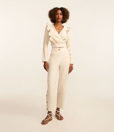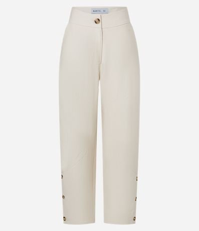 Ref: Calça carrot em alfaiataria, com botão no cós para fechamento, produzida em boas práticas ambientais e com botões na lateral da barra.