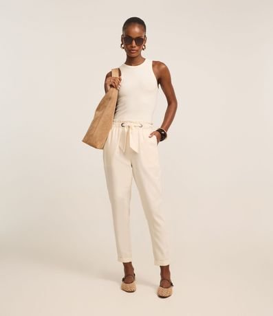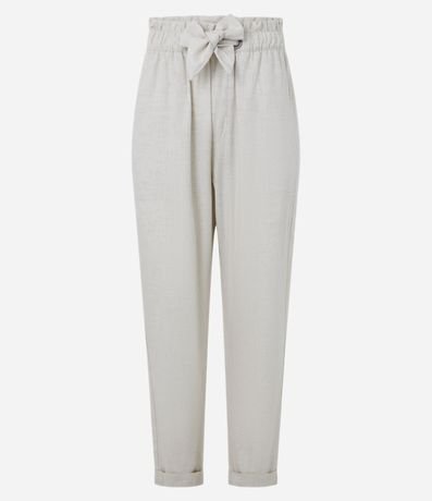 Ref: Calça carrot com cintura média, confeccionada em sarja e com amarração no cós elástico.