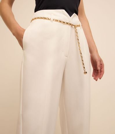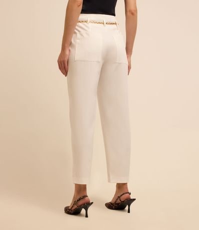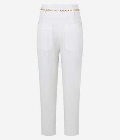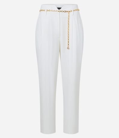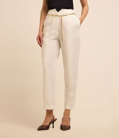 Ref: Calça cenoura alfaiatada de cintura alta com passantes na cintura e cinto de correntinha.
