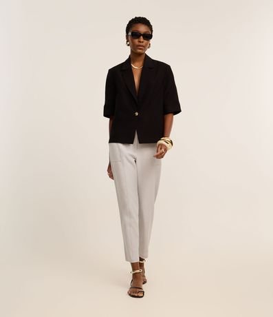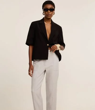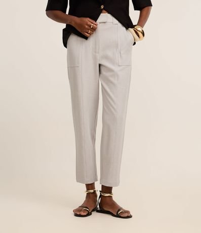 Calça Cenoura Alfaiatada Cintura Alta com Recorte Pespontado
